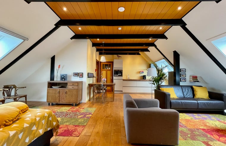 Dit natuurhuis is een royaal en sfeervol appartement met een fantastisch uitzicht. Een eigen badkamer, eigen keuken, eigen terras aan het water en een infrarood sauna. Twee fietsen...