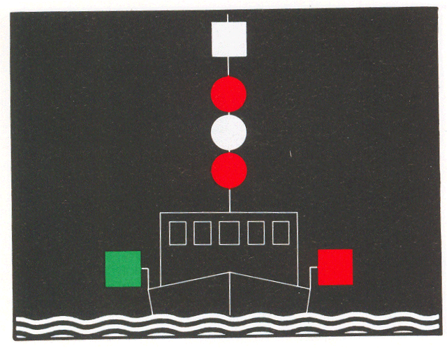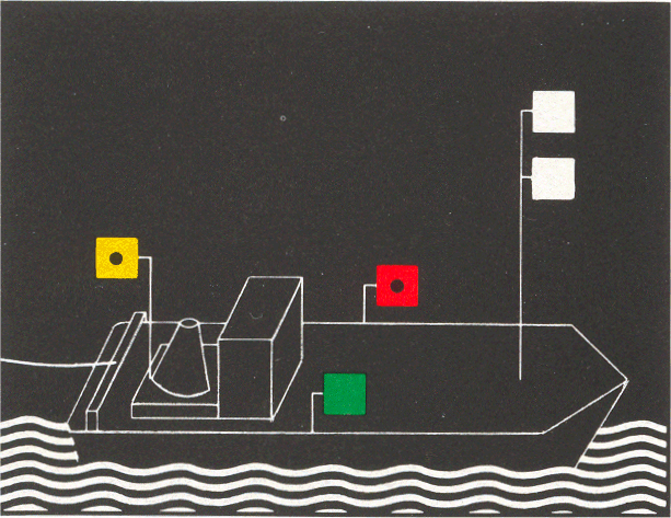 13°. vissersschip: schip dat vist met netten, lijnen, sleepnetten of ander vistuig, die de manoeuvreerbaarheid beperken;