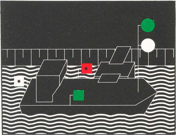 Tijdens de vaart mag de lading het vrije uitzicht niet meer beperken dan tot 350 m voor het schip of het samenstel.