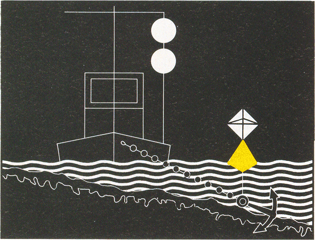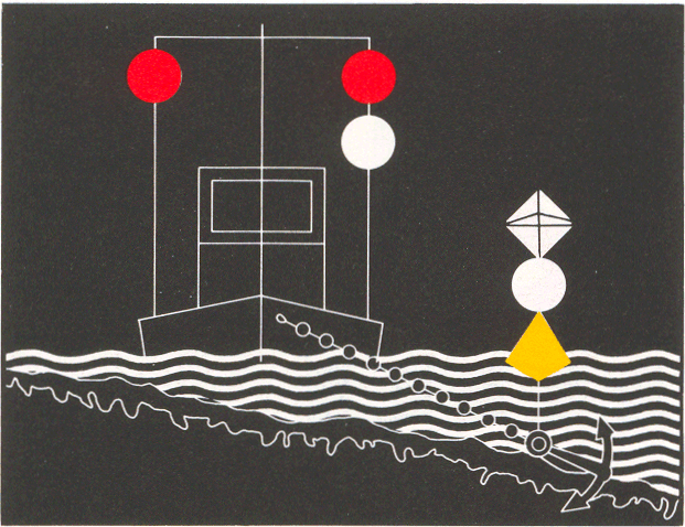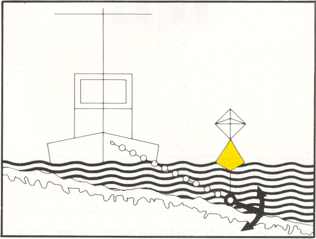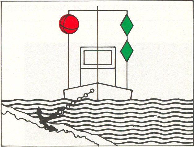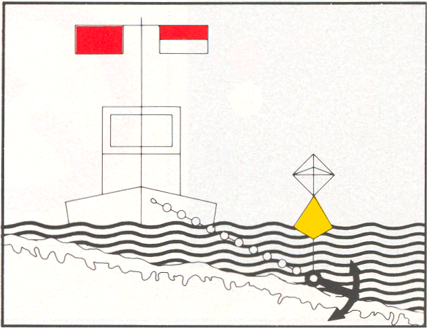 3°. stilliggend: hetzij ten anker hetzij gemeerd liggend;