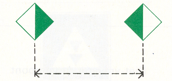 [xl]) In deze gevallen wordt ter betere ondersdcheiding van andere vaarwegmarkeringen afgeweken van het onder 1.3.3 beschreven beginsel