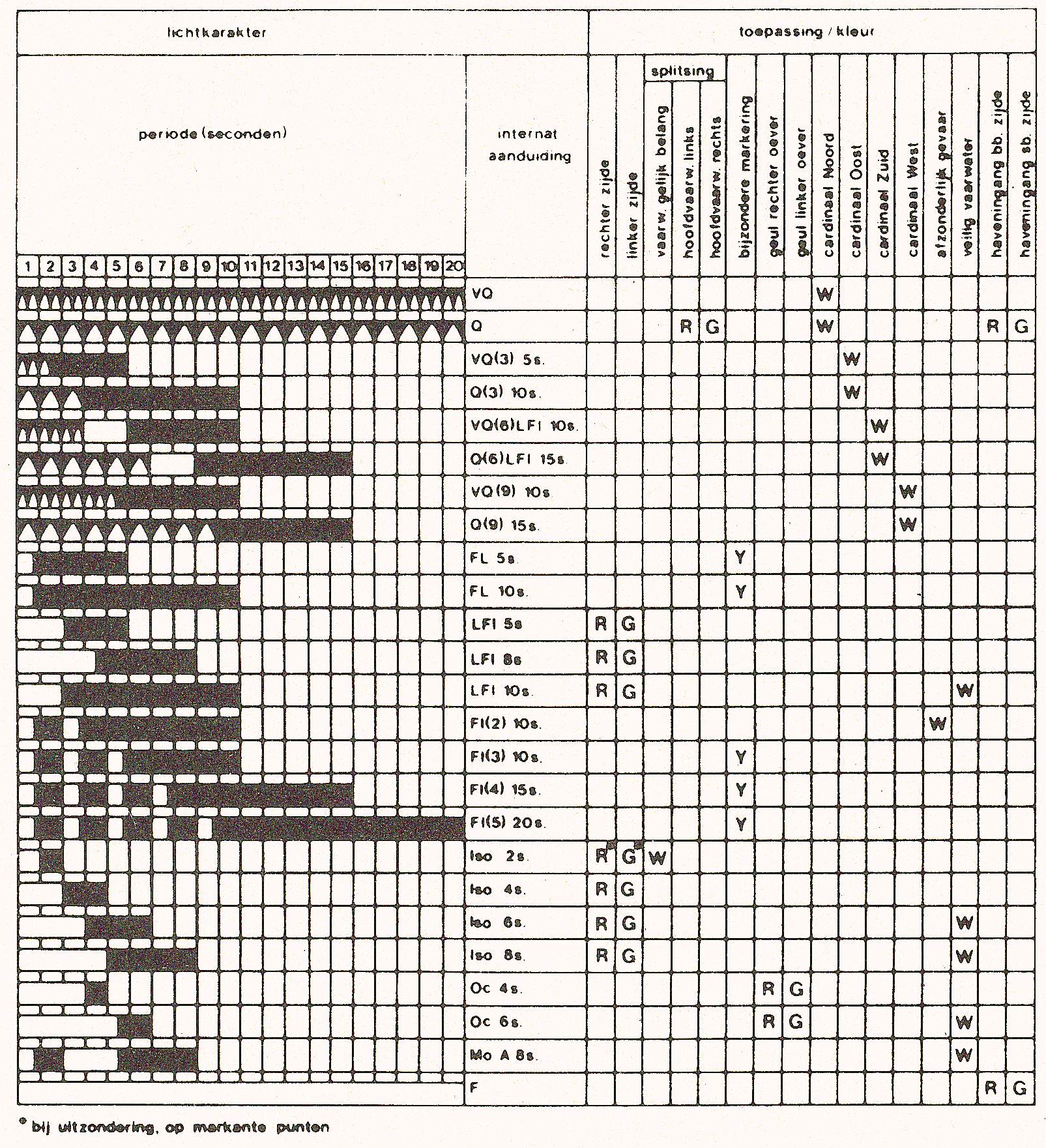 5°. flikkerlicht: periodelicht tonende 50 tot 60 flikkeringen per minuut;