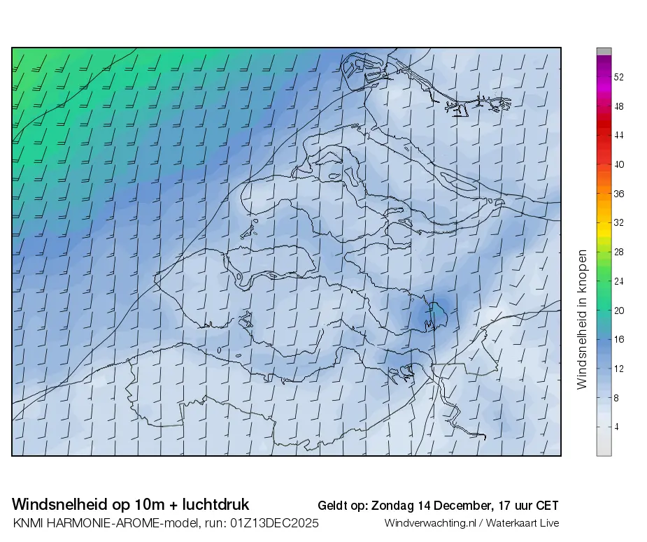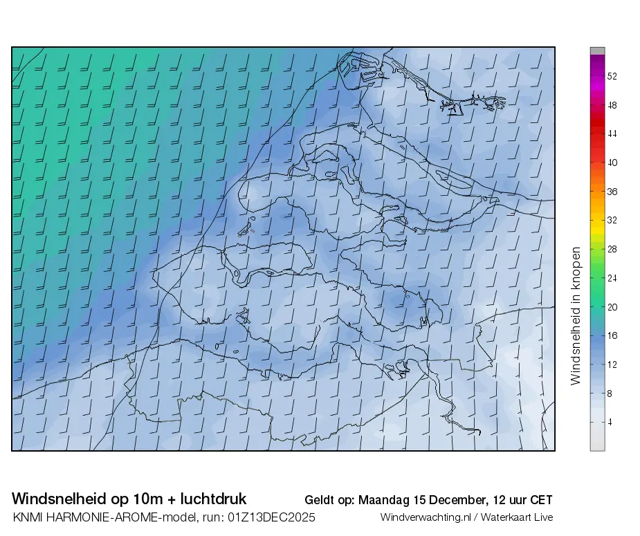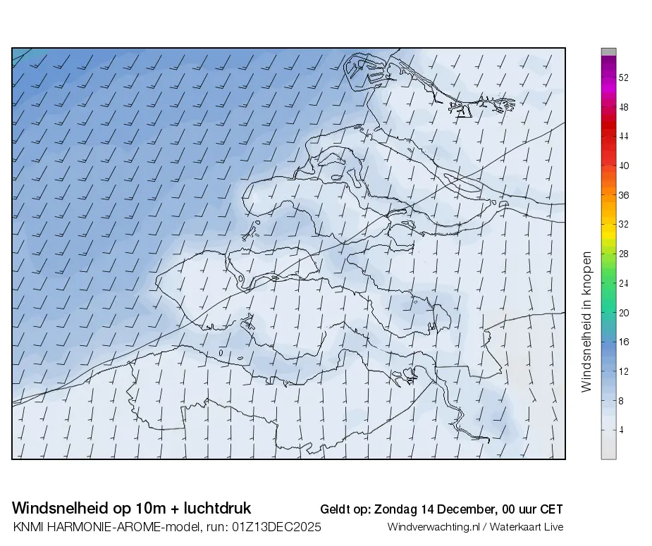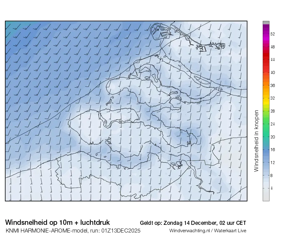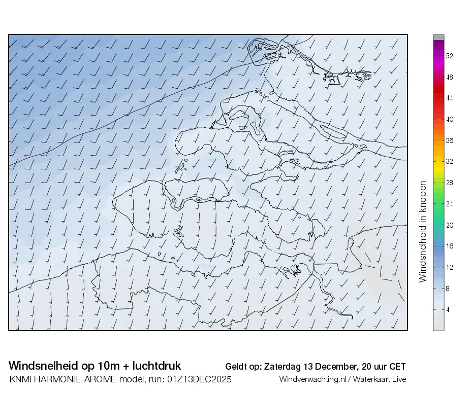 Dit zijn de actuele luchtdrukkaarten voor de Zeeuwse wateren, de uurverwachting is op basis van het Harmonie-Arome weermodel van het KNMI.
