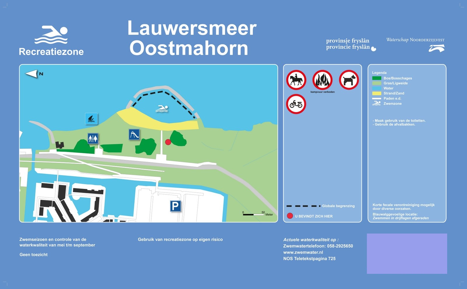 Hoe is het zwemwater bij Lauwersmeer Oostmahorn? Op de waterkaart hieronder zie je de zwemlocatie in zijn directe omgeving. Aan de rechterkant van deze pagina vind je alle informatie over het actuele weer, onderaan de zwemplekken in de buurt.