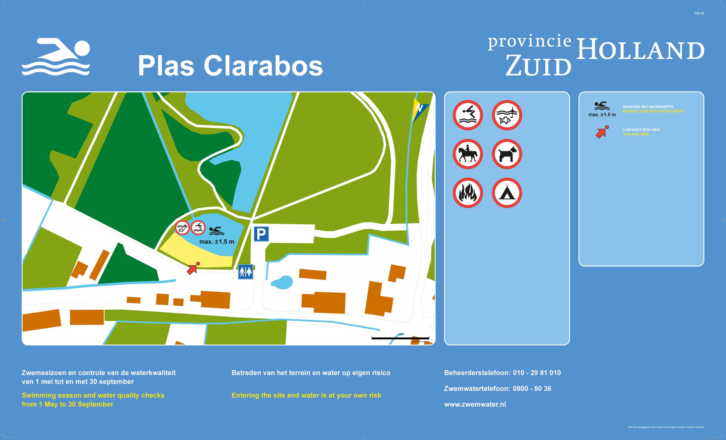 Hoe is het zwemwater bij Plas Clarabos? Op de waterkaart hieronder zie je de zwemlocatie in zijn directe omgeving. Aan de rechterkant van deze pagina vind je alle informatie over het actuele weer, onderaan de zwemplekken in de buurt.